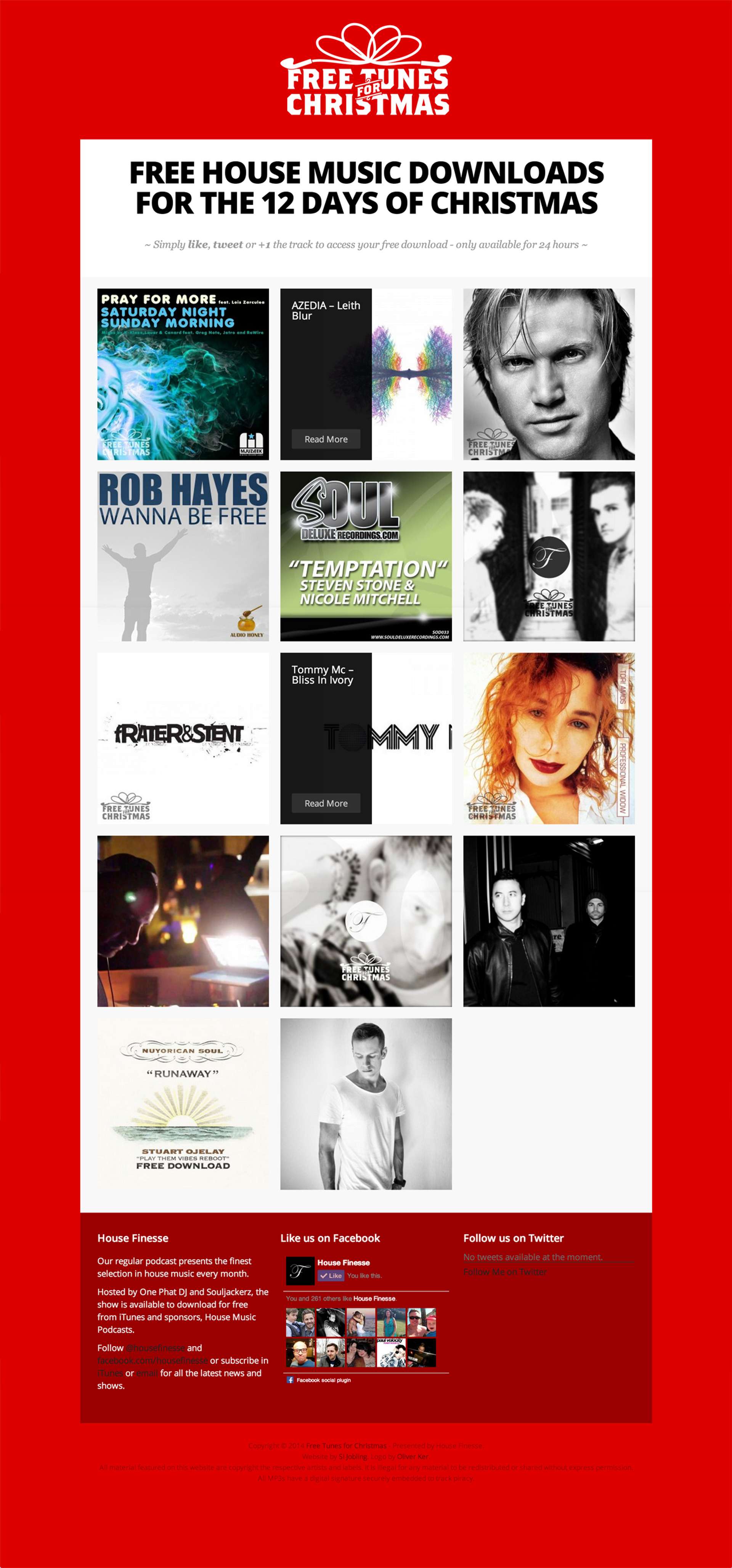 Several years back in 2010, I teamed up with a number of reputable producers from around the house music scene to offer free daily music downloads for the 12 days of Christmas. In return, the artists had the opportunity to build their profiles with accompanying releases, events and online profiles. Free Tunes for Christmas was born.